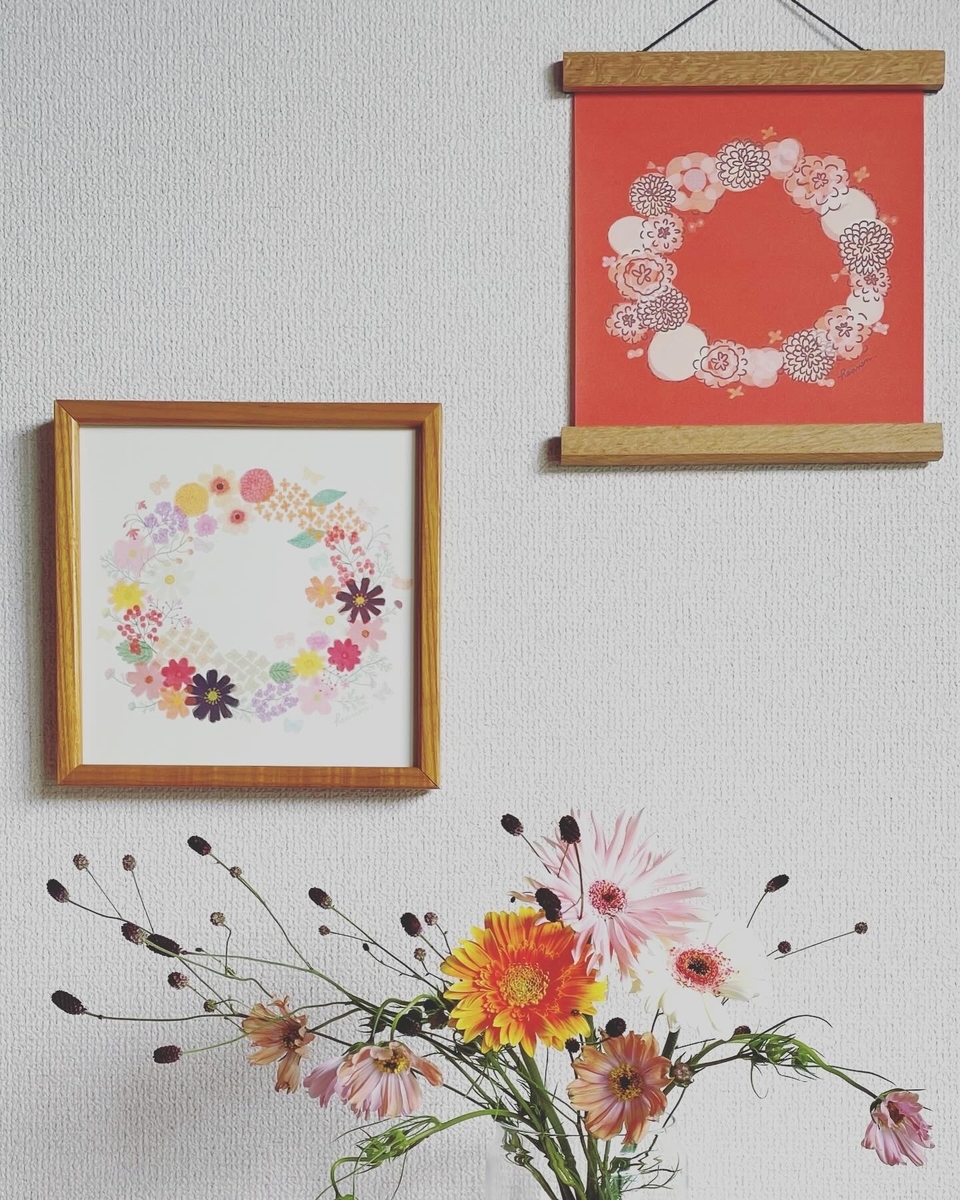 ●「ダリアのリース(オレンジ)」20cm角ポスター